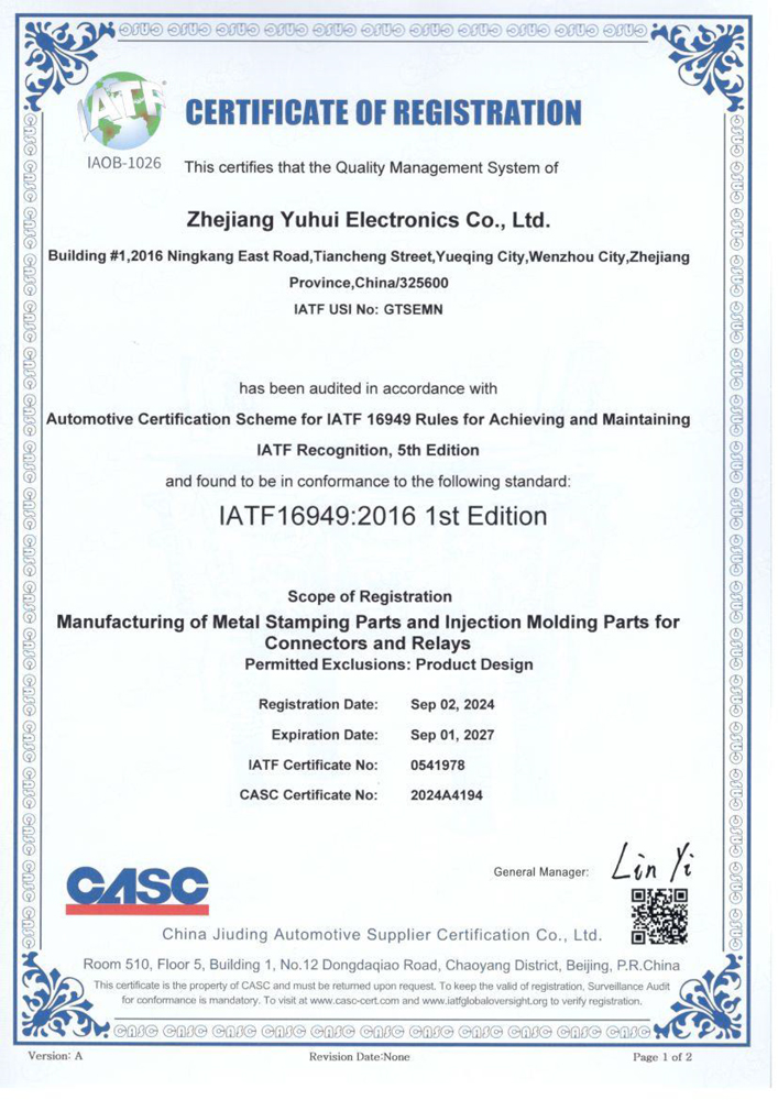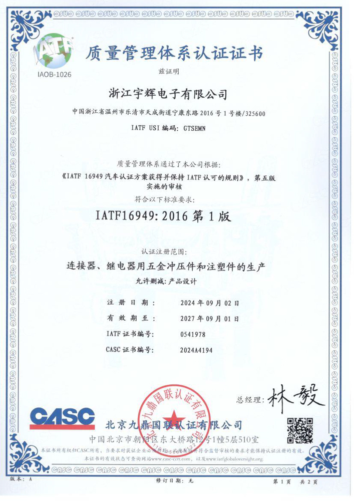 2012公司更名為:樂清市宇輝電子有限公司