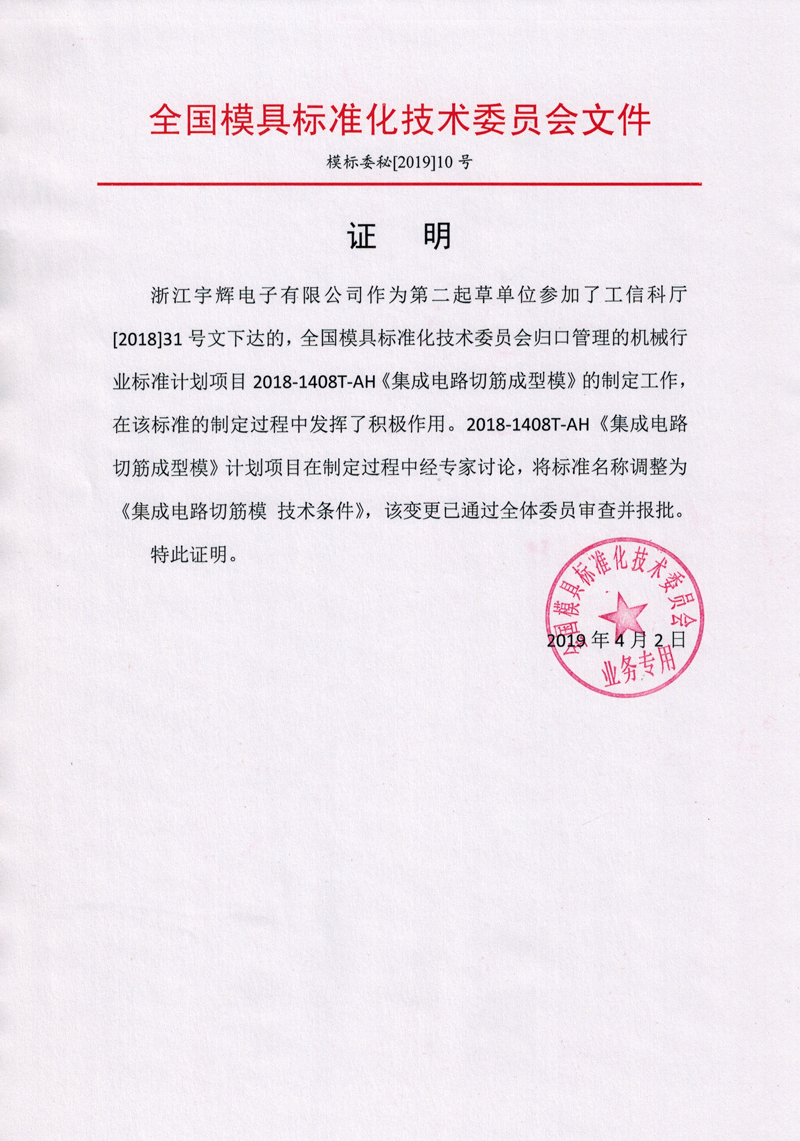 2018作為全國模具標(biāo)準(zhǔn)化技術(shù)委員會(huì)第二起草單位參與定制《集成電路切筋模技術(shù)條件》